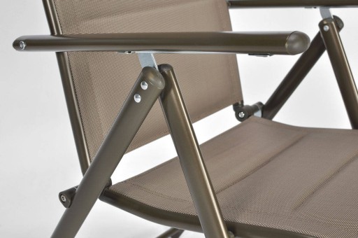Krzesło tarasowe wyposażone jest w prosty mechanizm regulacji nachylenia oparcia. Siedząc na krześle wystarczy unieść podłokietniki i przechylić się do wybranej pozycji. Oparcie możemy ustawić w 9 różnych pozycjach, co zapewnia wysoki komfort siedzenia.