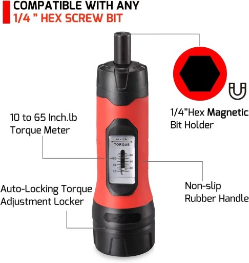 Wkrętak dynamometryczny wykonany jest z jakości stali stopowej i żywicy ABS. Głowica wykonana jest z dostarczonej stali stopowej. Rękojeść z żywicy jest wygodna w chwytaniu, antypoślizgowa i dostosowana do zastosowania.