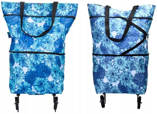 TORBA WÓZEK NA ZAKUPY ROZKŁADANA SKLADANY KÓŁKAMI Kolor niebieski