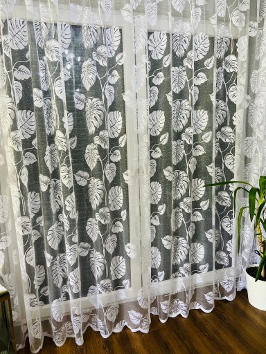 ФРАНЦУЗСКАЯ СТЕКЛЯННАЯ ВУАЛЬ МОНСТРА 250 СМ УЗОР ВЫШИВКИ БЕЛАЯ ДЛЯ ГОСТИНОЙ АКЦИЯ