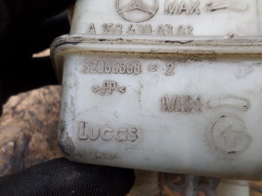 Używany, oryginalny zbiorniczek płynu hamulcowego, serwa hamulcowego z Mercedesa Aklasa W168 rocznik 1997-2004 wersja EUROPEJSKA. Pasuje także do innych Mercedesów.