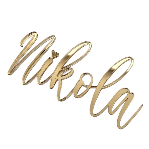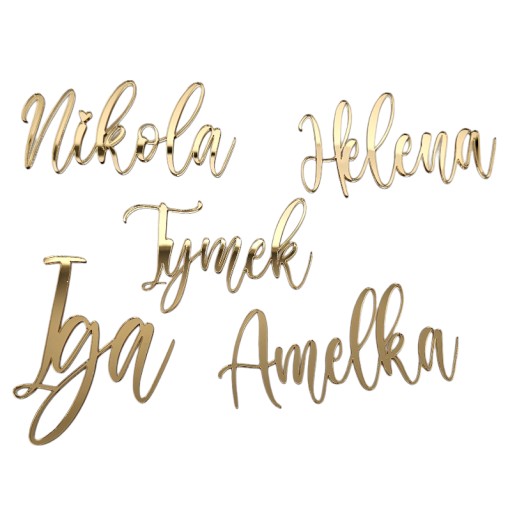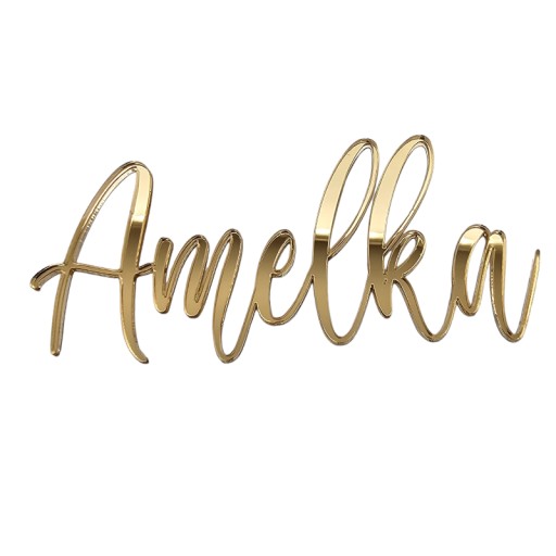 Dekor z imieniem na bok tortu to niezwykły dodatek, który doda blasku i elegancji twojemu wyjątkowemu przyjęciu. Wykonany ze złotej lustrzanej plexi, doskonale prezentuje się na torcie, dodając mu unikalnego charakteru.