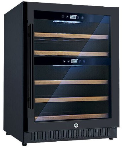 Winiarka BRGSW40L do zabudowy pod blatem. Dwustrefowa o pojemności do 40 butelek wina.