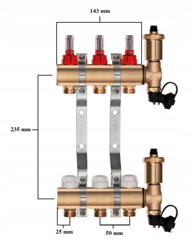 Rozdzielacz do podłogówki mosiężny z zestawem odpowietrzającym na 3 obwody