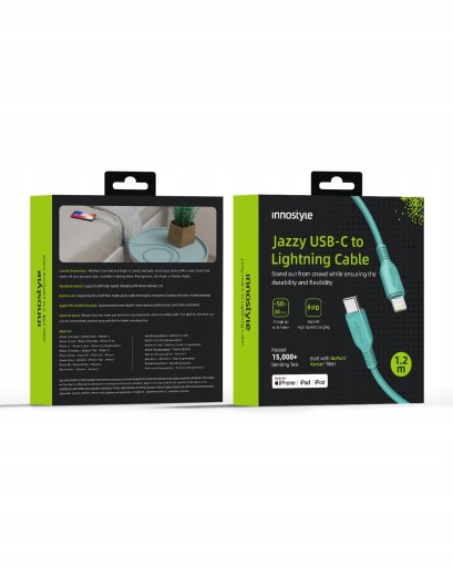 - Jak długo kabel wytrzyma intensywne codzienne użytkowanie - Nasz kabel Innostyle Jazzy jest wyposażony w wytrzymałe włókno Kevlar, co czyni go niezwykle odpornym na zginanie. Jazzy przeszedł test 15,000 zgięć. Dzięki temu jest aż 15 razy trwalszy niż standardowe kable, gwarantując Ci niezawodność i długowieczność, nawet przy najbardziej intensywnym użytkowaniu.