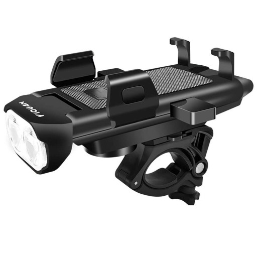 ✅ Uchwyt jest niezwykle funkcjonalny i pełni funkcję aż czterech oddzielnych produktów, które są niezbędne podczas codziennej jazdy na rowerze, w tym: uchwytu rowerowego, lampki rowerowej przedniej, dzwonka oraz powerbanka.
