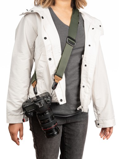 Regulacja długości w ułamku sekundy Pasek SLIDE posiada dodatkowy, aluminiowy uchwyt służący do regulacji długości. Niezależnie od tego, czy chcesz zmienić wysokość paska na szyi, czy przełożyć przez ramię, zmiana długości zajmuje dosłownie ułamek sekundy. W dodatku zrobisz to przy użyciu jednej ręki. To wyjątkowe rozwiązanie, które zmienia pasek SLIDE w ultra mobilny system noszenia aparatu. Komfort noszenia przez długie godziny Duża szerokość połączona z miękkim wykończeniem w okolicach szyi sprawia, że nawet wielogodzinne noszenie aparatu nie powoduje dyskomfortu. Na każdy rodzaj ubrania