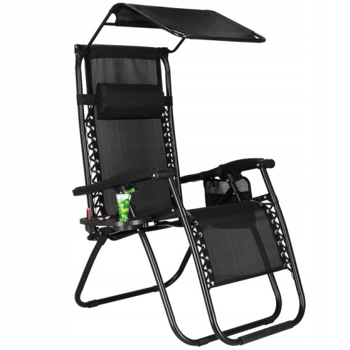 LEŻAK OGRODOWY PLAŻOWY GRAWITACYJNY Z DASZKIEM FOTEL SKŁADANY Z PODUSZKĄ