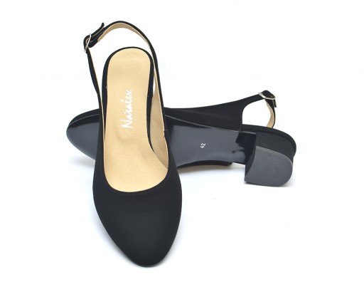 Czółenka damskie wykonane z eko-skóry zamszowej.