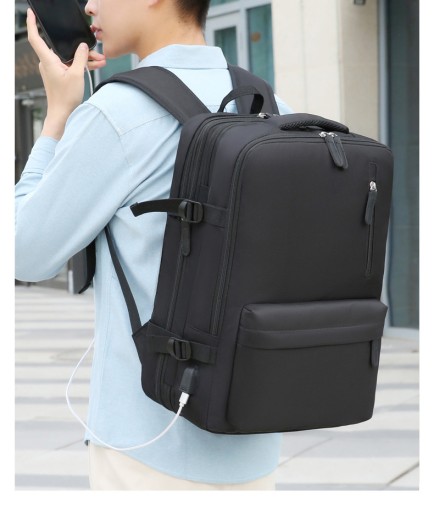 - Plecak posiada wbudowany, zewnętrzny port USB. Po podpięciu do niego power banka naładujesz swój telefon,laptop