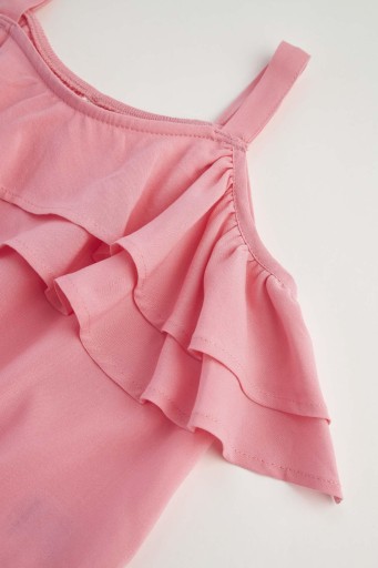 RÓŻOWY TOP BLUZKA FALBANKI RAMIĄCZKA WISKOZA GŁADKA DEFACTO 128-134
