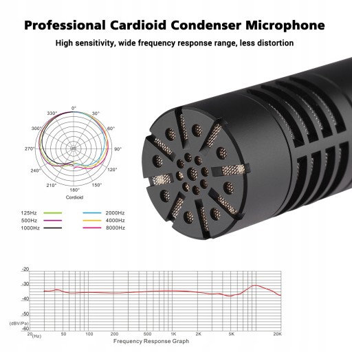 Profesjonalny mikrofon pojemnościowy z pozłacaną kapsułą membranową, wkładem przetwornika gradientu ciśnienia i kardioidalną charakterystyką przetwornika, zapewniający doskonałą odpowiedź przejściową, szeroką charakterystykę częstotliwościową, wysoką czułość, dokładną i czystą reprodukcję dźwięku.
