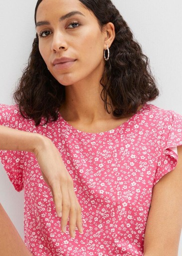 Informacje dodatkowe: Shirt z rękawami motylkowymi i nadrukiem w drobne kwiaty.