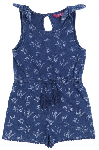 Niebieski kombinezon, w paprocie, bez rękawków.