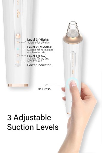 - 【Ładowanie USB i obsługa jednym przyciskiem】Urządzenie do usuwania wągrów jest ładowane przez USB. Pełne ładowanie trwa mniej niż 2 godziny i może być używane po wymianie dłużej niż 180 minut. Łatwa obsługa za pomocą jednego przycisku. Długie naciśnięcie, aby włączyć i krótkie naciśnięcie, aby ustawić poziom ssania. Dzięki temu prostemu i przyjaznemu dla użytkownika wzornictwu jest popularny wśród młodych ludzi, matek i ojców