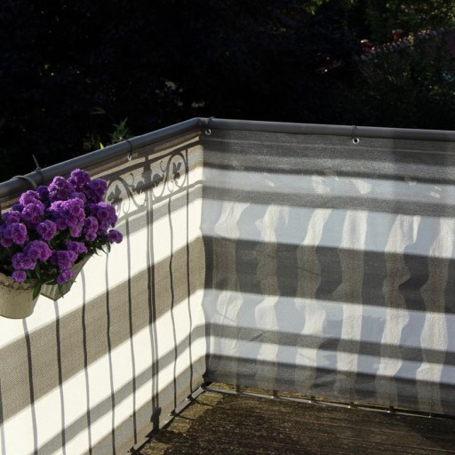 Staranne wykonanie zapewnia długotrwałe użytkowanie i satysfakcję z produktu. Osłona balkonowa ma metalowe oczka, co 50 cm na zewnętrznej krawędzi do mocowania za pomocą opasek mocujących. Osłona zamocowana w ten sposób jest odpowiednio napięta i estetycznie się prezentuje.