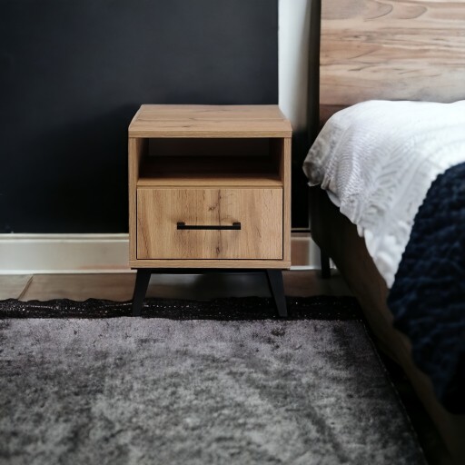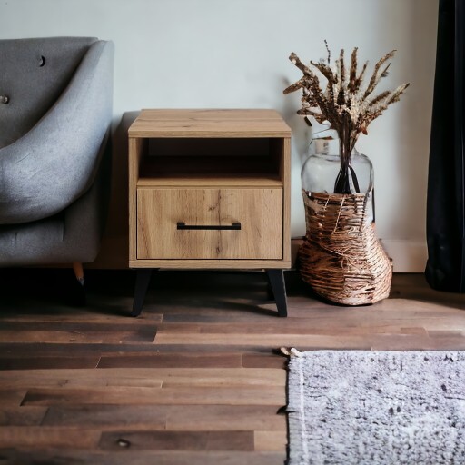 Стол, Прикроватная тумбочка с ящиком, ЛОФТ, Светодиодная лампа, ДУБ ВОТАН, Спальня