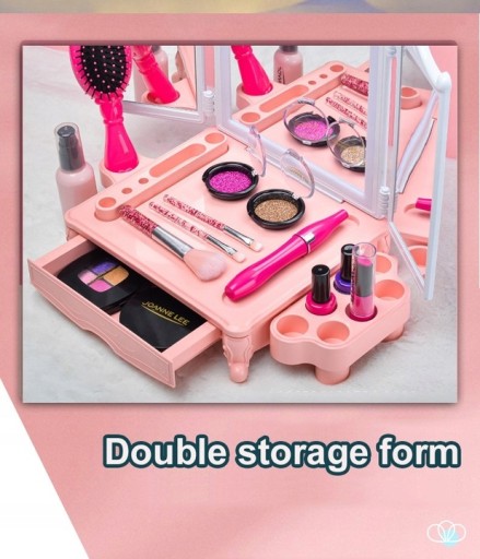Ale to jeszcze nie wszystko! W zestawie znajduje się również baza pod makijaż, 2 błyszczyki do ust i 2 szminki, które umożliwią twojemu dziecku eksperymentowanie z różnymi efektami ust. Dzięki 5 patyczkom do pielęgnacji paznokci i skórek oraz polerce do manicure, malowanie paznokci stanie się prawdziwą przyjemnością.