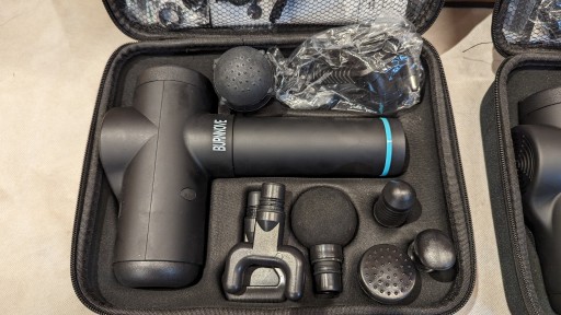 Pistolet do masażu BURNNOVE Elektryczny masażer mięśni Głęboka tkanka 99 prędkości 2550 mAh 3300 RPM. Niski poziom hałasu Ekran dotykowy LED z 8 wymiennymi głowicami.