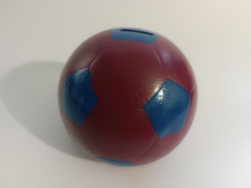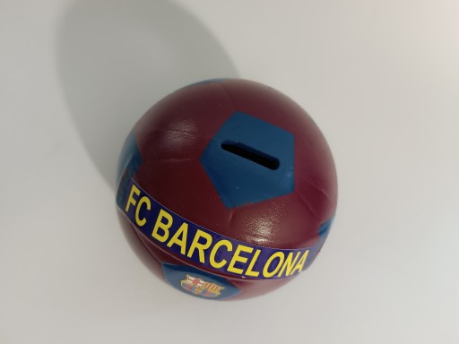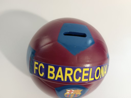 Ceramiczna skarbonka w kształcie piłki nożnej w barwach klubu. Idealna dla fana Barcelony . Skarbonka nie posiada otworu do wyciągnięcia zawartości.