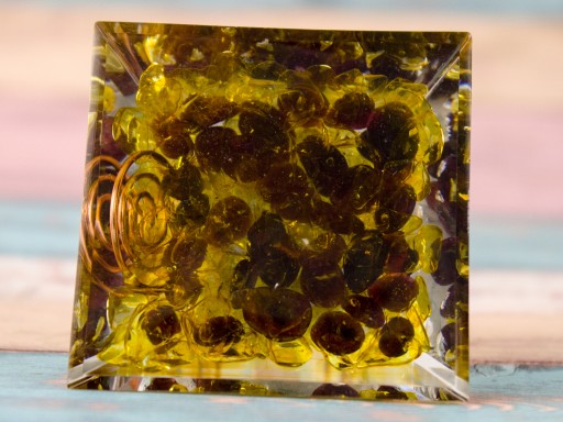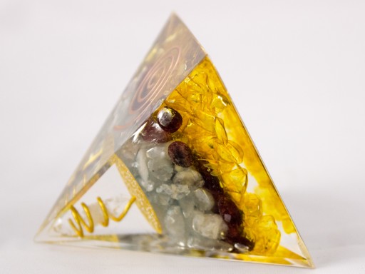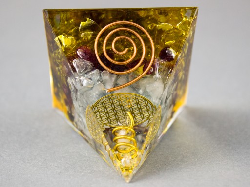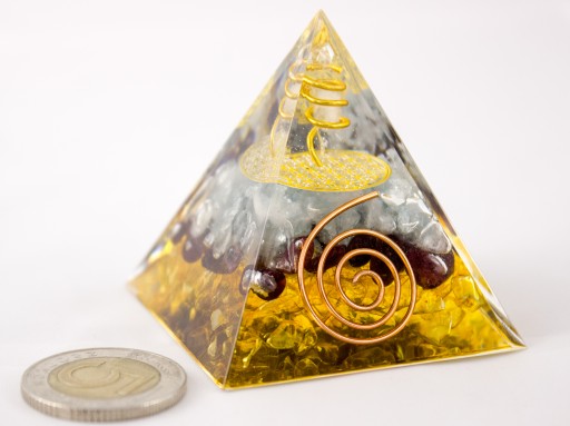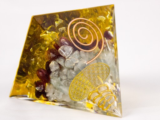 Ta orgonitowa piramida, poza swoim silnie pozytywnym, uzdrawiającym i uspokajającym działaniem wygląda też pięknie dzięki zatopionym wewnątrz kryształom, minerałom. Poza poprawą samopoczucia i pozytywnym oddziaływaniem na energię życiową osób w jej otoczeniu stanowi też przepiękny element dekoracyjny – kolorowy, niepowtarzalny i estetyczny.