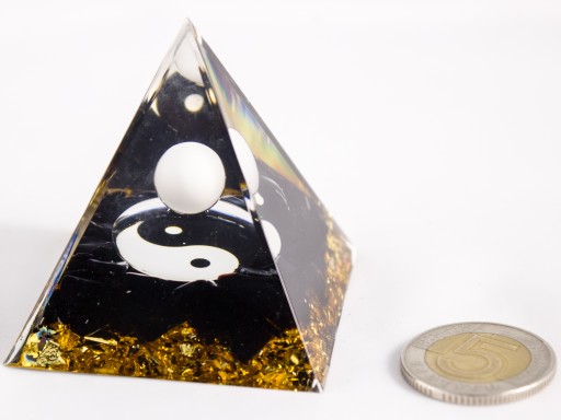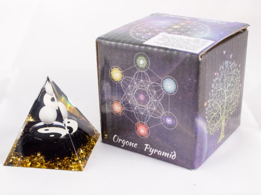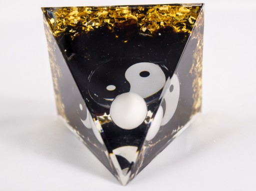 Piękna Piramidka Orgonitowa Yin Yang - czarno-biała piramida z Agatem, Kwarcem Dymnym i śliczną złotą folią, dodająca energii i ochrony całego organizmu i pomagająca spełniać nasze własne marzenia.