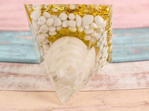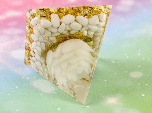 Piękna Piramidka Orgonitowa, która swoim działaniem energetycznym pomaga wyciszyć umysł, sprzyja w przyswajaniu wiedzy, łagodzi napięcie emocjonalne, zapewnia spokojny sen i tworzy przyjemną atmosferę.