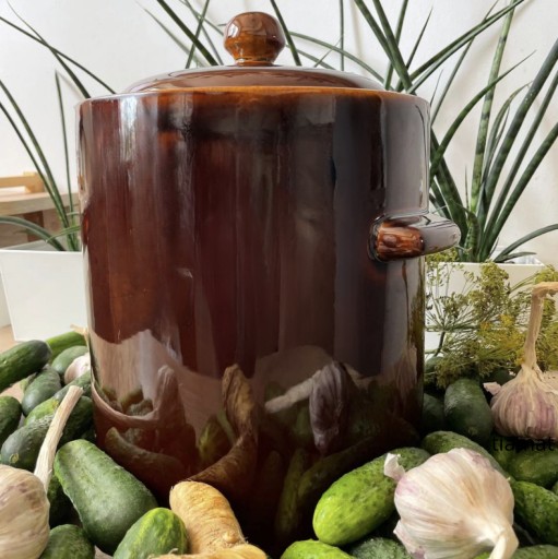 Całe naczynie z zewnętrznej i wewnętrznej strony pokryte jest szkliwem które nadaje mu kolor i połysk i dzięki któremu garnek odporny jest na kwasy więc perfekcyjnie sprawdzi się do przygotowywania kiszonek.
