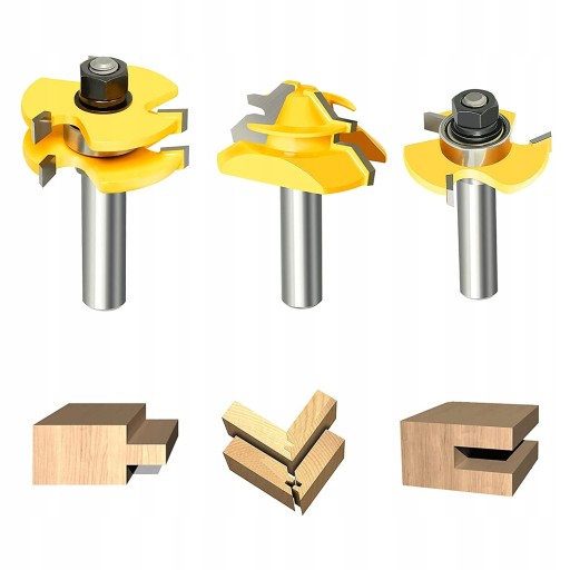 45 stopni blokada ukośna frez frez do drewna łącznik do ciastek 1/2 12,7 mm chwyt języka trzpień i zestaw do łączenia ciastek 3 zęby w kształcie litery T przecinak do drewna do obróbki drewna