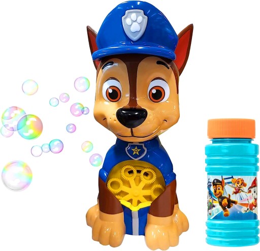 Przyłącz się do milionów fanów Psiego Patrolu i ciesz się niekończącą zabawą z maszynką do baniek w formie tej uroczej postaci ze świata bajki. Odkryj magię baniek z Chase'em już dziś!