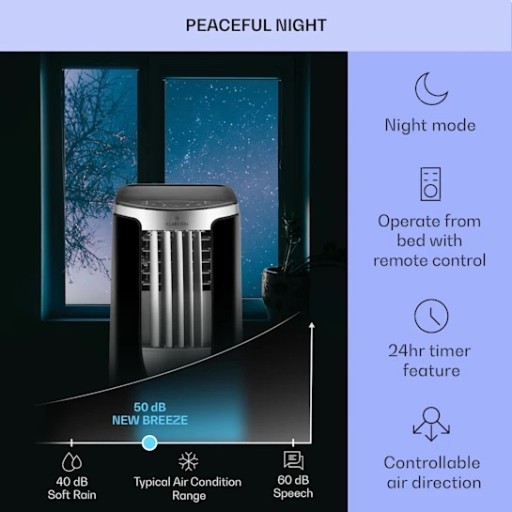 New Breeze 7, klimatyzator przenośny, 4 w 1, klasa efektywności energetycznej A, funkcja timera, pilot zdalnego sterowania