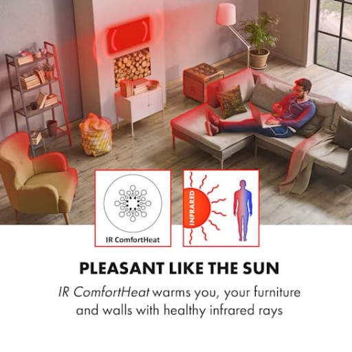Bardzo płaski panel grzewczy o wymiarach 101 x 60 cm można zawiesić bezpośrednio na ścianie, skąd roztacza bardzo przyjemne dla ludzkiej skóry ciepło podczerwieni. Dzięki innowacyjnej technologii IR ComfortHeat ciepło kierowane jest na osoby znajdujące się w pobliżu, a nie na otoczenie. Płyta grzewcza jest niezwykle energooszczędna: do 98% energii zamieniane jest na ciepło promieniujące. Rewolucyjny ogrzewacz uzupełnia termostat, funkcja automatycznego wyłączenia, timer, cicha praca oraz klasa ochrony przed zachlapaniem IP54.