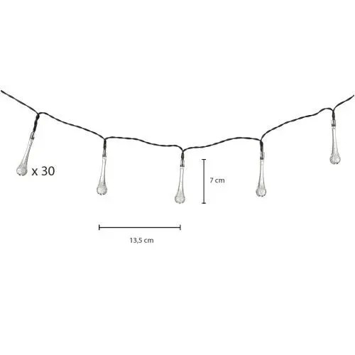 Lampki solarne ogrodowe łezki 6,5m 30LED ciepły biały