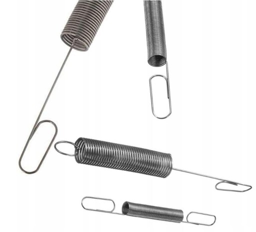 ✅Dane techniczne:ZamiennikDługość głównej (dużej) ok. - 73 mm , średnica zewnętrzna 6,9 mm , długość ramion 7,4 mm / 34,3 mm , luźna 32 mm , ściśnięta 21,5 mmDługość pomocniczej (małej) ok. - 44 mm , długość ramion 13 mm , średnica sprężyny 3,7 mmNumer części oryginalnej: ( duża ) 262759 , 690251 , 690254 , 691297 , 692211Numer części oryginalnej: ( mała ) 263109 , 691859