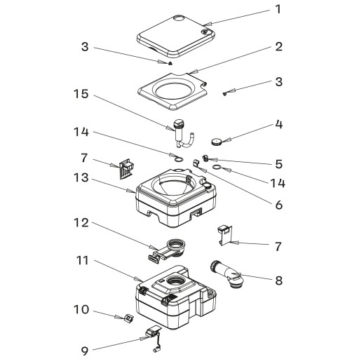 Natomiast dolna część to zbiornik wody ściekowej. Zbiornik dolny wyposażony jest w zintegrowaną wylewkę ułatwiającą opróżnianie oraz uchwyt do przenoszenia. Te dwie części można łatwo podłączyć i rozłączyć przy użyciu dźwigni z tyłu toalety.