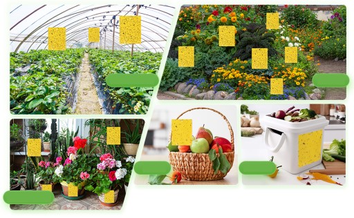 Konstrukcja dwustronna: żółte pułapki na muchy mają konstrukcję dwustronną, która może pomóc złapać więcej szkodników i owadów, można je umieścić w ogrodzie, trawniku, podwórku, pojemnikach na śmieci i tak dalej.