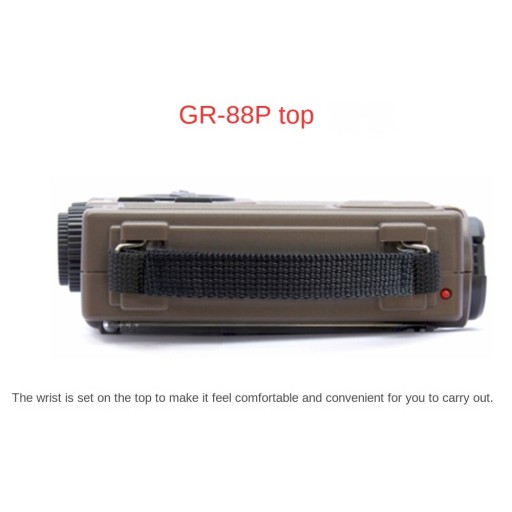 Tecsun GR-88P przeznaczony jest dla osób często słuchających audycji radiowych.Posiada wbudowany akumulator składający się z 3 baterii R6 oraz jest wyposażony w kabel ładujący.Po pełnym naładowaniu może być używany przez około 10 godzin.Pod W normalnych warunkach każdy akumulator można ładować i rozładowywać ponad 500 razy. GR-88P jest wyposażony w wysokowydajne ręczne generowanie energii do ładowania awaryjnego i oświetlenie ułatwiające użytkowanie bez zasilania prądem zmiennym. GR-88P łączy nowoczesną technologię DSP z tradycyjną strukturą dostrajania wskaźników, wykorzystuje zasadę oprogramowania radiowego do demodulacji sygnałów nadawczych i poprawia czułość odsłuchu, selektywność, stosunek sygnału do szumu i zdolność przeciwzakłóceniową