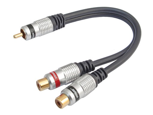 Oferowany trójnik służy do rozgałęziania/sumowania sygnałów AUDIO lub VIDEO w sprzętach oraz przyłączach posiadających złącza typu RCA. Rozgałęziacz taki najczęściej stosowany jest w sytuacji gdy chcemy zsumować dwa sygnały (np. AUDIO L + AUDIO R) i podłączyć do odbiornika sygnału (np. subwoofer) wyposażonego tylko w jedno gniazdo wejściowe. Możliwe jest również zastosowanie odwrotne np. gdy chcemy źródło sygnału mono (np, kamera, magnetowid) podłączyć do odbiornika stereo (amplituner, TV), posiadającego dwa gniazda wejściowe (AUDIO L, AUDIO R). Rozgałęziacz stosowany jest także do podziału sygnału AUDIO, VIDEO lub S/PDIF COAXIAL z jednego źródła na dwa odbiorniki itp. Oferowany trójnik posiada wtyk RCA/CINCH z jednej oraz dwa gniazda RCA/CINCH z drugiej strony: