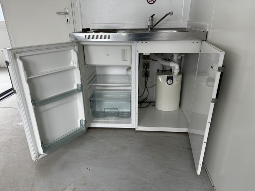 KONTENER BIUROWY CONTAINEX 2,5×6 PRZEDSIONEK WC + ANEKS KUCHENNY ZLEW LODÓWKA