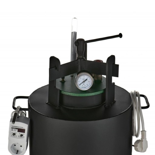 Autoklaw domowy "CZE-40 electro (Uniwersalny)" to jest tanie urządzenie wykonane z czarnego metalu, do sterylizacji oraz przygotowywania przetworów. On ogrzewa się od sieci i zewnętrznego źródła ciepła, to sprawia, że urządzenie jest uniwersalne. Autoklaw idealnie nadaje się do użytku domowego. W zestawie autoklawu jest blok sterowania, który zapewnia proces przygotowywania przetworów w trybie automatycznym zgodnie wybranego czasu i temperatury. Autoklaw wyposażony w zawór awaryjny, to sprawia, że proces przygotowywania przetworów jest bezpieczny.
