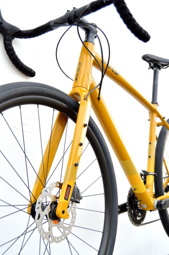 Dla osób, którym spodobały się nasze Topstone 3 Carbon, jednak wolą połaczenie dobrego osprzętu z aluminiową rama mamy atrakcyjną propozycję z najnowszym zestawiem GRX820/822 i 12 rzędową kasetą. Wyjątkowa komfortowa pozycja Felta Broam spodoba się zarówno początkującym jak i bardziej zaawansowanym rowerzystom. Mostek z dodatkową wkładką regulującą rozszerza dopasowanie kokpitu. 60-milimetrowa przestrzeń na opony w najwęższym miejscu ramy oznacza, że montując 50mm gumy żadna droga już Cię nie zatrzyma. Dopracowana rama z SuperLite Aluminium i taperowany W PEŁNI CARBONOWY widelec tworzą spójną całość w niezbyt popularnym, karmelowym kolorze. Połyskujący lakier będzie łatwy do utrzymania w czystości, a zabrudzenia i kurz w tym odcieniu stosunkowo mało widoczne. Rower posiada oczywiście mocowania pod bagażniki, pełne błotniki i dodatkowe akcesoria na widelcu oraz nad i pod ramą. Przerzutki najwyższej mechanicznej serii Shimano GRX od 2024 dostępne są w wariancie RX820/822 w konfiguracji 2x12. Korba ze zintegrowaną osią ma blaty o 46 i 30 zębach. Jeśli dodamy do tego kasetę 11-34t to otrzymamy napęd z przełożeniem znacznie powyżej 1:1. Klamkomanetki 2x12 mają gumy z prążkami znanymi z poprzedniej serii GRX810. Linki oczywiście schowane są pod owijką, a przerzutka ze sprzęgłem pozwala na użycie kaset o dużej rozpiętości bez obniżenia kultury pracy. Rama oczywiście posiada wewnętrzne prowadzenie linek i okablowania, jednak bez kłopotliwej w serwisie integracji mostka. Fabryczne koła Devox RDS.A1 na dwie sztywne osie poprawiają stabilność konstrukcji, szczególnie przy dużym bagażu. Obręcze mają szerokość 21mm, a ich zaokrąglony, niski przekrój z większą ilością szprych wygląda bardzo dobrze. Piasty Shimano to pewny zestaw z dobrym dostępem do części zamiennych. Wheelset połączono z oponami Maxxis Refuse w rozmiarze 700x40c. Wyjątkowo solidny i wytrzymały model, dobrze sprawdzi się pod cięższymi kolarzami. Odczucia z jazdy na suchym szutrze i asfalcie na tej oponie są rewelacyjne. Efektywne hamowanie w każdych warunkach zapewniają sprawdzone hydrauliczne tarcze GRX. Zestaw jest bardzo przyjazny w eksploatacji i tani w serwisie. Żelowe siodło Selle Royal Essenza jest całkiem przyjemne nawet w czasie jazdy bez pieluchy, dobry wybór także do wykorzystań użytkowych. Kierownicą ma delikatną flarę i jest pokryta miękką owijką, której wykończenie przypomina zamsz. Perforacja skrywa odblaskową taśmę co mocno poprawia bezpieczeństwo.
