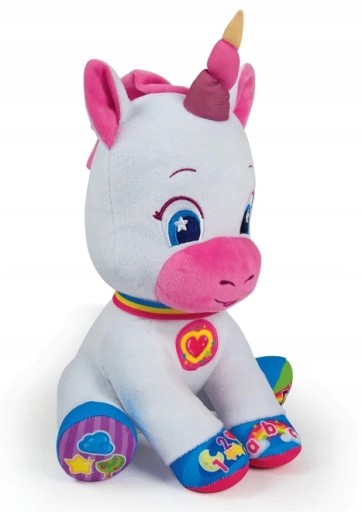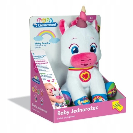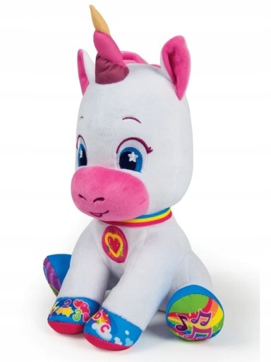- Ten uroczy jednorożec zabawi dzieci mnóstwem efektów dźwiękowych i świetlnych i poprowadzi je do odkrywania liter, cyfr, kształtów i kolorów.
