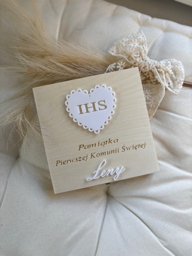 - serce IHS oraz imię dziecka jest wykonane z mlecznej plexi