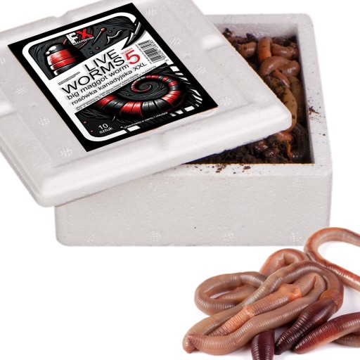 ⭐️ Nasz produkt zawiera ręcznie segregowane dżdżownice gatunku Rosówka Kanadyjska do rozmiaru największych, czyli No.5 Rozmiar, który gwarantuje obfite połowy.