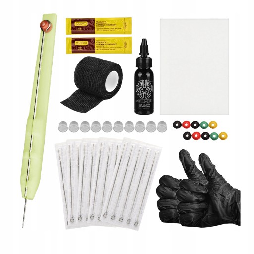 Zestaw Do Tatuażu Hand Poke Pen Z 25 1/3/5/7 / 9RL Igłami Kolorowymi Kubkami