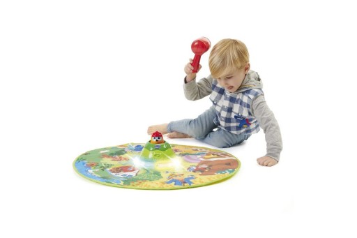 - Baw się dowolnie – dziecko ma za zadanie rozpoznać każdy obszar oraz związany z nim dźwięk i kolor; może swobodnie skakać po macie lub uderzać młotkiem, aby je odkrywać; po trafieniu w losową liczbę obszarów krecik zostanie uwolniony,