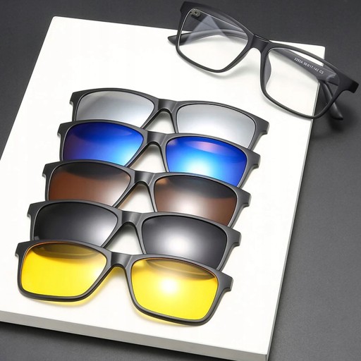 Nr kat. 4726 https://www.youtube.com/watch?v=x_W1DzsUrdA Okulary oprawkiw zestawie z nakładkami przeciwsłonecznymi polaryzacyjnymi. Ciekawe i uniwersalne rozwiązanie dla osób noszących okulary korekcyjne. Nakładki zmieniasz wygodnie i szybko, dzięki mocowaniom na magnes. Filtr UV400 kat.3 W zestawie 5 lekkich nakładek (nie wpływają na obniżenie komfortu noszenia okularów korekcyjnych): % przepuszczalności światła 1 polaryzacyjna - czarne soczewki (5%) 2 lustrzane - niebieskie (9%) i srebrne soczewki (9%) 1 przeciwsłoneczna - soczewki brązowe (11%) 1 do jazdy nocą - rozjaśniające soczewki żółte (61%)Cały zestaw w wygodnym etui. Wymiary oprawki: mostek: 20 mm długość zausznika: 142 mm szerokość szkła: 55 mm szerokość oprawki: 144 mm wysokość oprawki: 49 mm Kształt: prostokątne Materiał: plastik Zauszniki z fleksem: tak Możliwość wymiany szkieł u optyka: tak Okulary produkowane są zgodnie z normą Europejską CE zapewniając doskonałą ochronę oczu i niezawodność podczas codziennego użytkowania. POWŁOKA POLARYZACYJNA: zapewnia duży komfort widzenia redukuje odblaski świetlne polepsza kontrast widzenia i nasycenie barw FILTR UV400 stanowi podstawową ochronę wzroku we wszystkich zakresach promieniowania ultrafioletowego. Soczewka wyposażona w filtr UV400 blokuje każdą falę o długości poniżej 400nm (nanometrów), tak więc nosząc okulary z tym filtrem masz pewność, że twoje oczy będą miały zapewnioną ochronę przed szkodliwym promieniowaniem UV-A, UV-B i UV-C