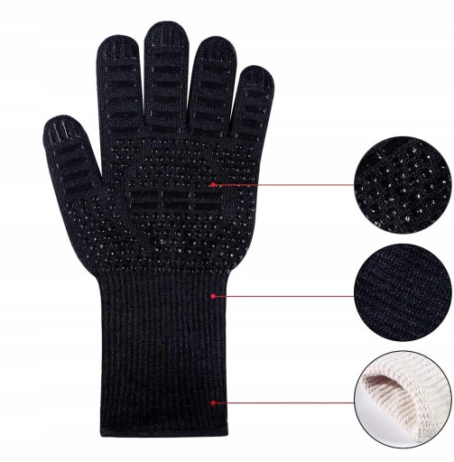 Rękawice kuchenne mogą stabilnie zapewniać super ochronę przed wysoką temperaturą do 800 ° C (1472 ° F), a także mają najwyższą odporność na przecięcie zgodnie z normą EN388. Trwały i bardzo długi, chroni dłonie i przedramiona przed oparzeniem podczas korzystania z grilla lub rusztu piekarnika.