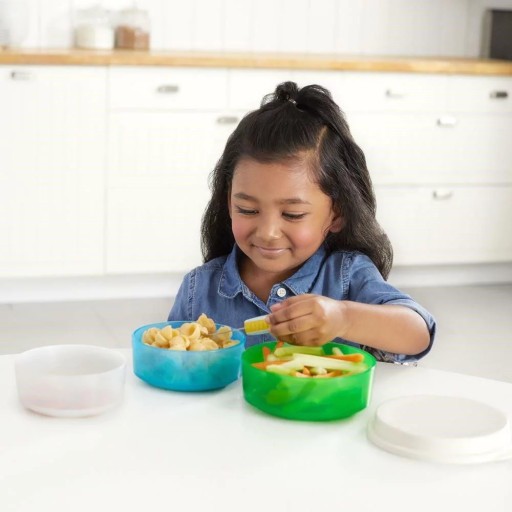 - Największa miska może służyć jako pojemnik na drugie śniadanie,