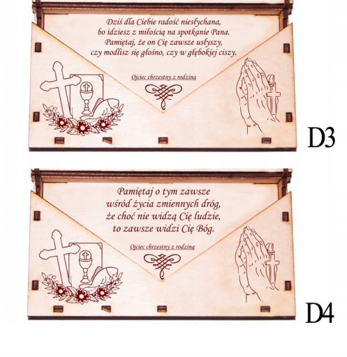 Pudełko drewniane ze sklejki na pieniądze na komunię to piękny i trwały prezent dla dziecka, który pozwoli mu zachować i przechowywać drobne upominki i pieniądze otrzymane z okazji Pierwszej Komunii Świętej.